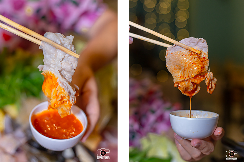 น้ำจิ้มของทางร้านก็ดีงามไม่แพ้กัน มีทั้งน้ำจิ้มแจ่ว และน้ำจิ้มสุกี้ โดยสูตรเป็นของทางร้านเอง ทำเองทุกขั้นตอน ตัวสุกี้จะหอมงามากกกก ส่วนแจ่วก็แซ่บนะเออ