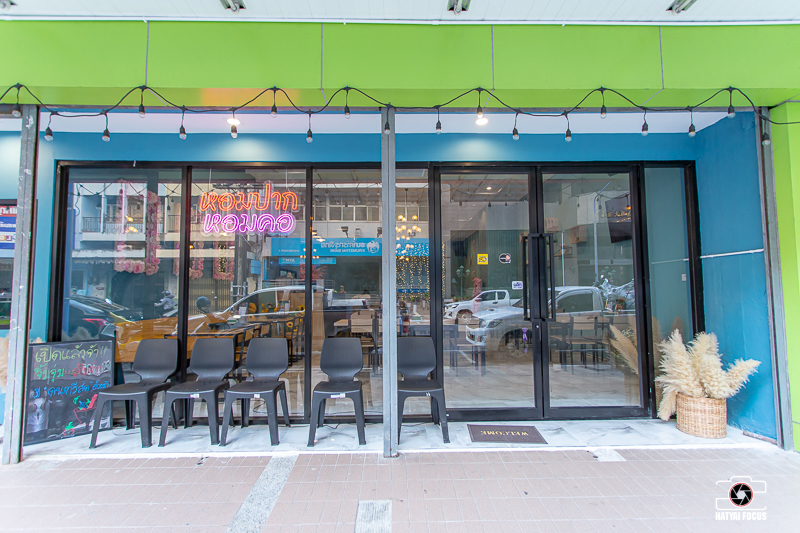 ก่อนอื่นต้องบอกเลยว่าร้าน หอมปากหอมคอ หาไม่ยากเลยนะจ๊ะ ตั้งอยู่เส้นสาย 2 ตรงข้ามธนาคารกรุงไทย เป็นร้านโทนสีฟ้า ๆ มีป้ายไฟตัวใหญ่ ๆ แถมบบรยากาศภายในร้านคือดีมากกก ติดแอร์เย็นฉ่ำ