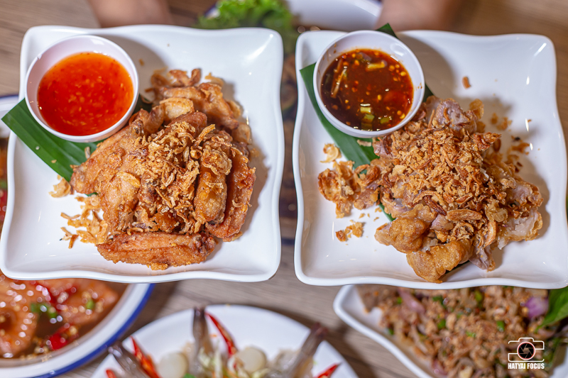 ตบท้ายด้วยเมนูของทอดอย่างปีกไก่ทอด และคอหมูทอด ทอดร้อน ๆ พร้อมเสิร์ฟด้วยหอมเจียวแบบจุก ๆ กินคู่กับน้ำจิ้มไก่ และน้ำจิ้มแจ่ว สั่งมากินเล่น หรือกินกับเมนูส้มตำ ยำต่าง ๆ ก็เข้ากันสุด ๆ เลยจ้าาา