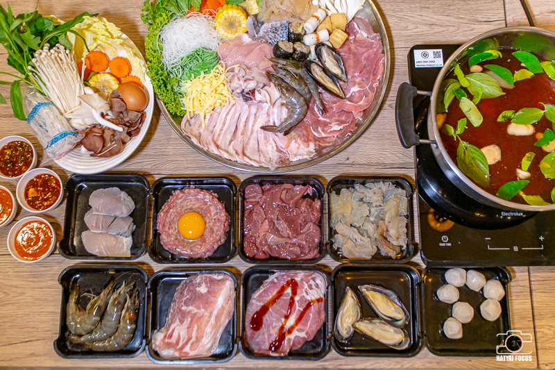 มาดูที่อาหารของทางร้านกันบ้างดีกว่า เด็ดสุดนาทีนี้ต้องยกให้เมนูจิ้มจุ่มเลยจ้ะ มีทั้งแบบชุด แบบอะลาคาร์ทให้เลือก ราคาเริ่มต้นที่ 25 บาทเท่านั้น มาพร้อมกับน้ำซุปสมุนไพรกลิ่นห๊อมหอมเย้ายวนใจมากก
