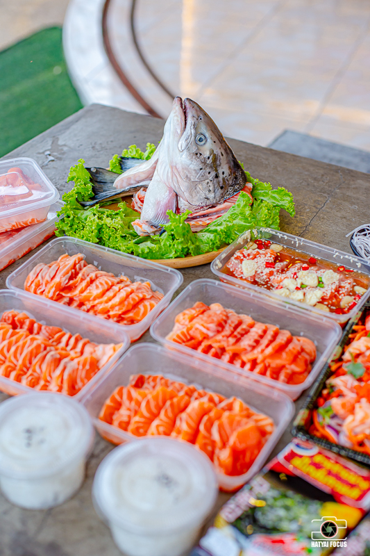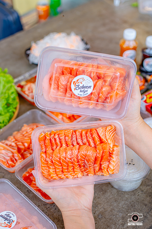 ที่สำคัญทางร้านเค้าคัดสรรปลาสด คุณภาพดีเกรดพรีเมี่ยมจากนอร์เวย์มาให้เพื่อน ๆ กันเลยน้าาาา น้ำหนักปลาจะอยู่ที่ 5 กิโล แล่ฟรีพร้อมทาน แถมเครื่องเคียงให้ด้วย ในชุดมีน้ำจิ้มซีฟู้ด และซอสโชยุ บอกเลยว่าแค่ชุดนี้ก็อิ่มคุ้มพุงแตกแน่นอน