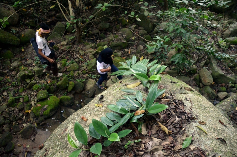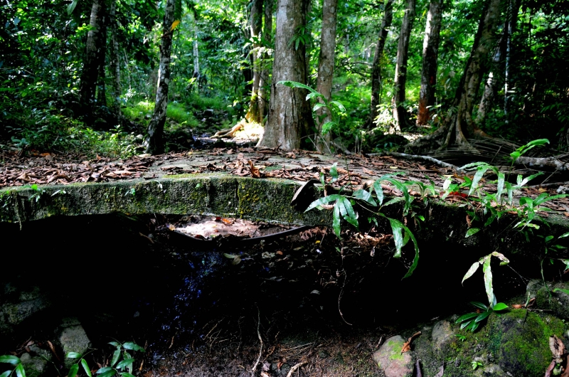 จากป้ายปราสาทนางผมหอม เราเดินผ่านสวนยางโล่งเตียนไปเรื่อยๆ ผ่านลำธารเล็กๆ บ่อน้ำโบราณ สักครู่ก็ถึงทางเข้าส่วนที่เป็นอุทยานปราสาทนางผมหอม จากสวนยางโล่งเตียนที่มีความสว่าง ทันทีที่ก้าวเข้าเขตอุทยานบรรยากาศกลับครึ้มไปในบัดดล และกลิ่นหอมก็โชยมา เพื่อนอีกคนโผล่งออกมาทันทีว่า หอม ผมหันมองหน้าทันทีด้วยแววตาหวั่นๆ แปลกมากบรรยากาศที่โล่งสบาย กลับรก ครึ้ม ชื้น ขณะเดินดอกชบาสีแดงหล่นจากเบื้องสูงตกลงเบื้องหน้าผม ผมตกใจปกติชบาต้นไม่ใหญ่ขนาดที่ดอกจะร่วงมาจากที่สูงได้ แม้กลัวอยู่บ้างแต่ก็อดแหงนหน้ามองไม่ได้ จึงเห็นว่าต้นชบาถูกทิ้งไว้ในป่า มันจึงเร่งความสูงเพื่อรับแสงแดดนั่นเอง เราใช้เวลาเดินอยู่นานยิ่งเดินยิ่งมืด จึงมีมติกันว่าจะกลับ ไม่ไปต่อแล้ว กลัวกลับออกมาไม่ทัน และเมื่อเราตกลงว่าจะกลับ พลันได้ยินเสียงกู่ร้อิง "วู้ๆ" จากช่างภาพ 2 คนทันที คนนำทางห้ามไม่ให้เราตะโกนรับ เขาบอกว่ารอให้กู่ครบ 3 ครั้งก่อน เพราะนั่นหมายถึงเสียงคน หากต่ำกว่านี้ ไม่ใช่คน เดชะบุญเสียงกู่มี 3 ครั้ง เรารีบขานรับทันทีแล้วรีบจ้ำออกมา เมื่อเราก้าวออกมาจากเขตอุทยานจากที่ฟ้าครึ้มกลับสว่างโล่ง ยังกะคนละมิติ ช่างภาพทั้ง 2 คน ยืนรออยู่ทางออกพอดี เมื่อเขาเจอเรา เขาบอกให้รีบกลับบอกมีธุระ เราก็งงๆ เพราะตอนมาเขาบอกว่าง