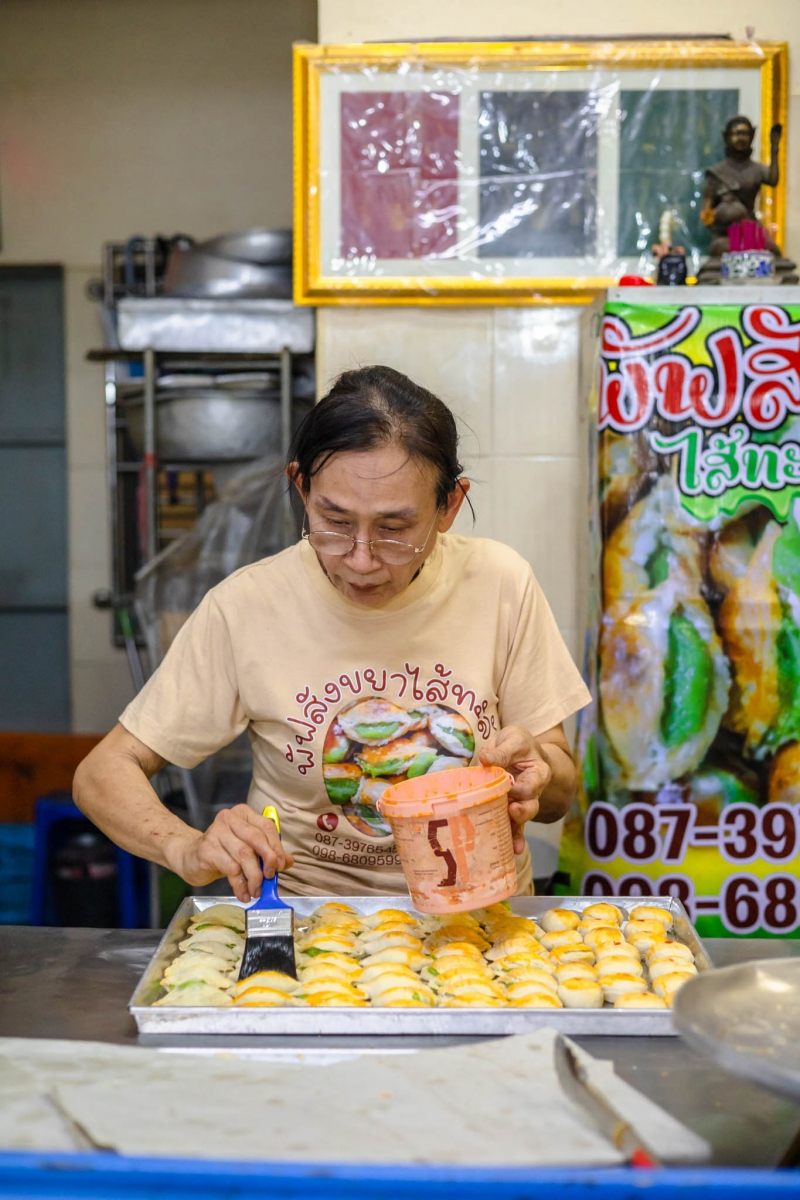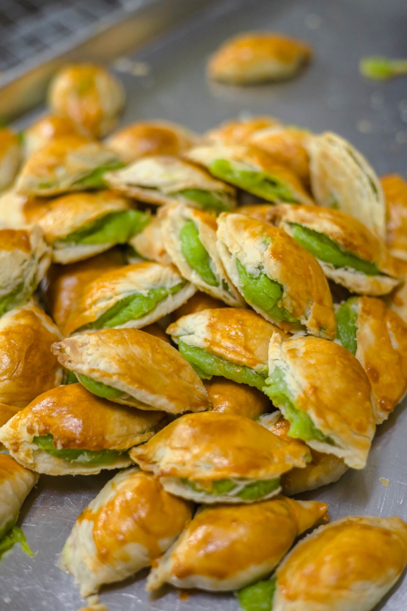 หลังจากที่มีกระแส ช่วยพิ่มยอดขายเราได้ยังไง และคิดไหมว่าจะมาถึงจุดนี้ - โอ้โหว ต้องบอกว่าดีกว่าเยอะ พอเป็นกระแสทำขนมทั้งวัน ตื่นตั้งแต่ตี 2 นั่งปั้นจนถึงบ่ายๆ ตอนที่ยังไม่เป็นกระแสครึ่งวันตลาดก็จะหมดคนแล้ว พอเงียบเราก็ปิดร้าน บางวันปั้จนเมื่อยแต่ก็ต้องทำเพราะลูกค้ารออยู่หลายเจ้า ขนมค่อนข้างขายดีทุกใส้ ต้องใช้เวลาอบประมาณ 30-40 นาที และระหว่างการอบก็ต้องมีช่วงที่นำพัฟออกมาทาไข่บนขนมพัฟมีจุดประสงค์เพื่อเพิ่มความเงางาม สีสัน และทำให้ผิวขนมดูน่ารับประทาน โดยการทาไข่จะช่วยให้ขนมอบมีสีเหลืองทองน่ารับประทานและเงางามหลังจากการอบ