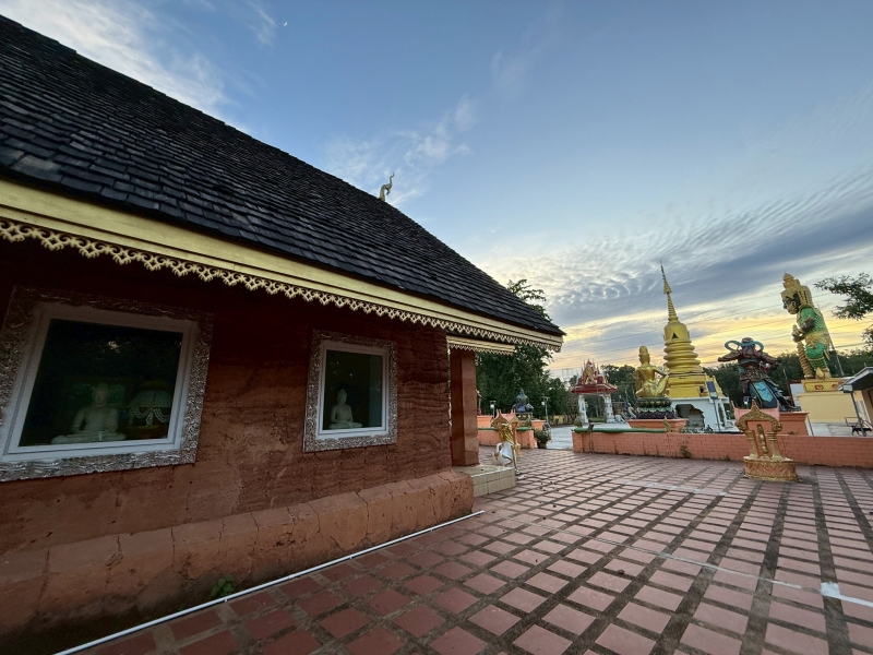อุโบสถแห่งนี้มีขนาด 7 x 15 เมตร สร้างขึ้นอย่างแตกต่างจากอุโบสถทั่วไป เพราะกำแพงทั้งหลังทำจาก ดินแดงที่ผ่านการบดอัดแน่น จึงให้ความสวยงามแปลกตาและมีเอกลักษณ์เฉพาะตัว ถือเป็นสัญลักษณ์ของการผสมผสานระหว่างภูมิปัญญาท้องถิ่นกับเทคโนโลยีสมัยใหม่ได้อย่างลงตัว