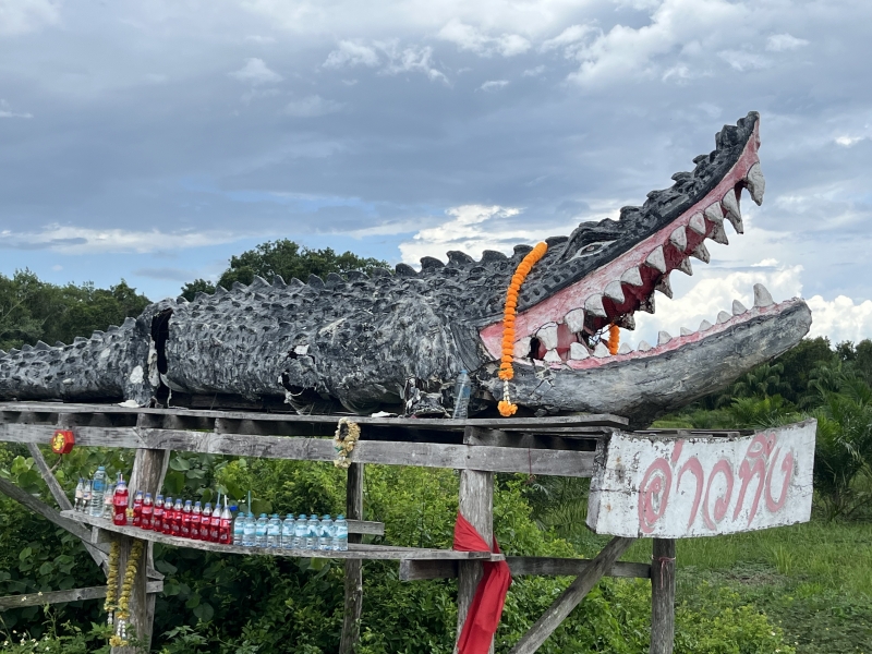 แม้ปัจจุบันจระเข้ตามธรรมชาติจะไม่เหลืออยู่แล้ว แต่ชาวบ้านก็ได้สร้างรูปปั้นขึ้นแทน เพื่อสืบสานความทรงจำและตำนานผู้พิทักษ์แห่งสายน้ำไว้ให้คนรุ่นหลังได้รู้จัก ไม่เพียงเป็นสัญลักษณ์ทางความเชื่อเท่านั้น แต่ยังสะท้อนถึงความผูกพันระหว่างมนุษย์กับธรรมชาติที่อยู่ร่วมกันอย่างกลมกลืนมาตั้งแต่อดีต