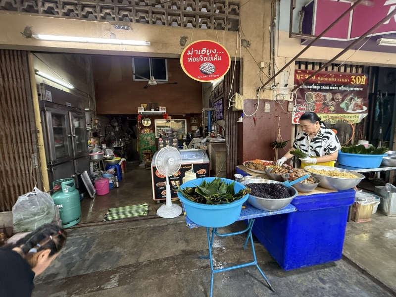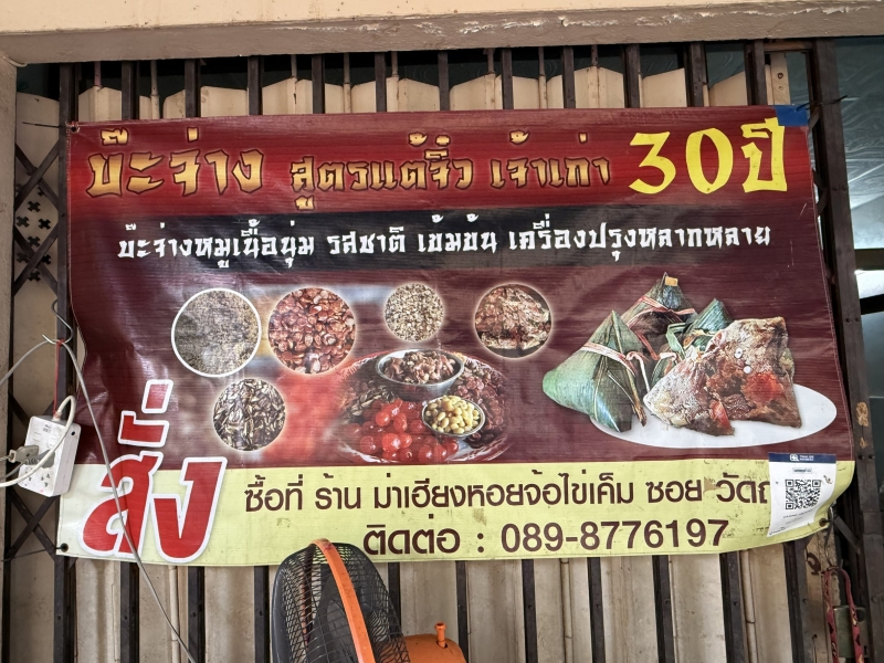 -โดยจุดเด่นของร้านเรา เราค่อนข้างที่จะให้ใส้เยอะ เพิ่มรสชาติให้เข้มข้นและกลมกล่อม จนปัจจุบันบ๊ะจ่างที่ร้านรสชาติจะมีความหอมถึงเครื่องใส้แน่นกัดตรงไหนมีแต่ใส้จริงๆ จึงอาจจะเป็นอีกหนึ่งความอร่อยของที่นี่ ส่วนอีกอย่างที่พี่อยากนำเสนอคือ บ๊ะจ่าง บ๊ะจ่างข้าวเหนียวดำ ร้านเราจะใช้ข้าวเหนียวดำลืมผัวข้าวเหนียวจะมีความหอมเวลาเอาไปผัด ขายในราคาลูกละ 50 บาท