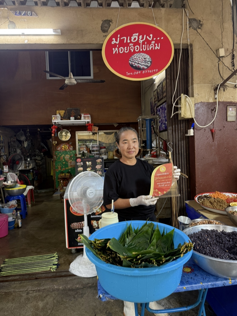 -อย่างในเทศกาลบ๊ะจ่าง ตอนนั้นแม่เราทำเป็นอยู่แล้วไง แม่ก็แค่ทำขาย แต่แค่ว่ารสชาติใครรสชาติมัน พอเรามาทำปรับสูตรช่วงนั้นแม่พี่แกยังอยู่ เราก็ได้พูดกับแกเสมอว่ามีอะไรอยากปรับสุตรก็บอกได้ แกก็จะคอยสอนเราตลอด ศึกษาจากแก กับการลงมือทำลองไปเรื่อยๆ