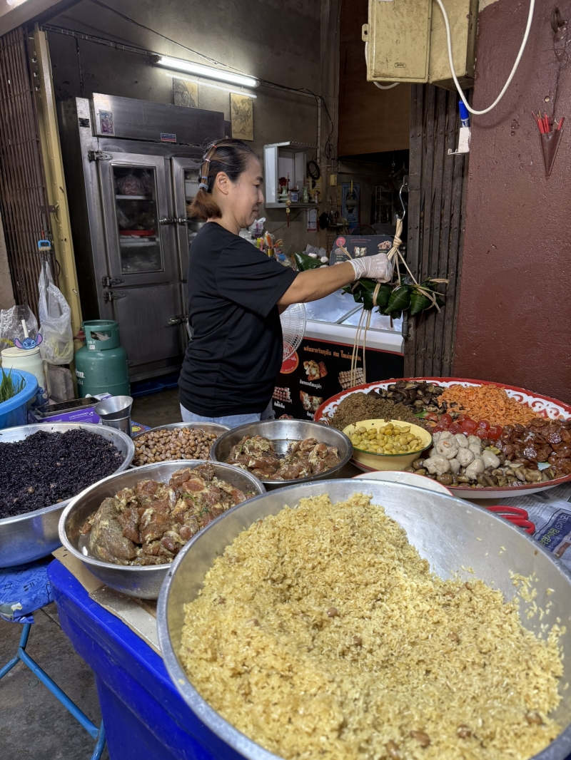 -ที่สำคัญอีกหนึ่งคือของพี่ทุกอย่างที่หมักเช่นหมู จะหอมเครื่องเทศมาก และได้กลิ่นของพริกไทย บ๊ะจ่างเราเค็มนำ หมูต้องหมักข้ามวัน เราใช้สันคอ ปัจจุบันไม่ค่อยนิยมใช้สามชั้นเพราะค่อนข้างมัน