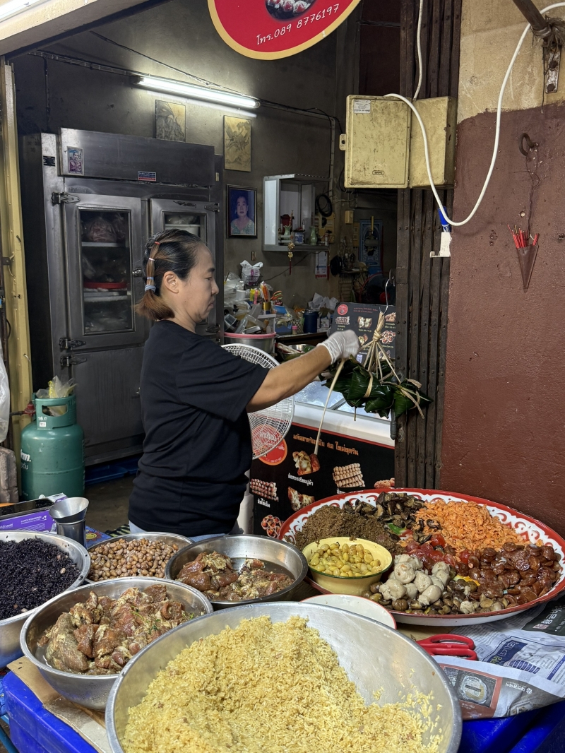 -ในอดีตอย่างข้าวเหนียวจะไม่มีการเอาไปผัด เป็นข้าวเหนียวแช่เสร็จก็เอาไปคลุกกับเครื่องและเกลือแล้วก็ห่อ เครื่องในแต่ก่อน ก็จะมีแค่ หมู เห็ด ไข่แดง หรือบางทีก็ไม่ใส่แล้วแต่ แต่พอมาในช่วงของพี่ พี่ว่าบ๊ะจ่างการที่ใส่เครื่องเยอะอร่อย เราก็ต้องมาดูว่าเราควรจะใส่เครื่องอะไรดีที่ทานแล้วต้องไปด้วยกันได้