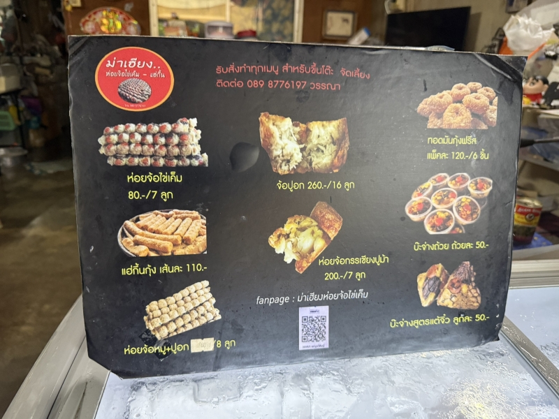 เครื่องบางทีเราใส่เยอะขนาดนี้พี่สาวเราก็บ่น พี่เลยบอกไม่เป็นไร เพราะทุกวันพี่คิดแค่ว่า ถ้าลูกค้าอยากกินบ๊ะจ่างทำยังไงก็ได้ให้ลูกค้าคิดถึงเรา ถ้าลูกค้าอยากกินแฮ่กึ๊น พี่พยายามทำทุกอย่างให้นึกถึงเรา ต้องมาเจ้านี้ เป็นความคิดที่เราแน่วแน่ไว้แต่แรก เราทำมาตั้งแต่อายุตอนที่ไม่ถึง 20 ปี จนมาในปี 2534 ที่เราเข้ามาทำเองแบบเต็มตัว ก็ 30 กว่าปี ภายใต้ร้านที่ชื่อว่า "ม่าเฮียง" สามารถโทรสั่งได้ที่เบอร์ 089-8776197 พี่ตุ่ม หรือเพจร้าน ม่าเฮียงห่อยจ้อไข่เค็ม