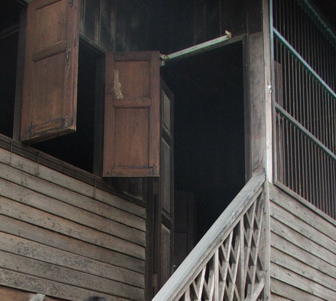 วันหนึ่งเป็นวันโกน ลูกแกทั้งสองป่วย เจ๊แกเลยต้องคอยเช็ดตัวลูก ๆ อยู่ตลอด ระหว่างนั้นแกได้ยินเสียงตรงประตูคีย์การ์ดเพื่อเปิดเข้ามายังบันไดชั้นสองดังขึ้น แต่แกไม่สนใจ ครู่หนึ่งประตูไม้ที่ห้องแกเหมือนจะเปิดดังอี๊ดดดดด แกรีบหันไปดู ใจตกถึงตาตุ่ม เพราะสิ่งที่อยู่ตรงประตูคือ ผู้ชายแก่ รูปร่างสูง ตัวดำ นุ่งผ้าโจงกระเบน มือถือมีดพร้า เจ๊แกเห็นปุ๊บ แว็บแรกว่านั่นคือโจร แกรีบกระโดดไปยังหัวเตียง เพื่อที่จะหยิบเอาปืนและเปิดไฟ วินาทีเดียวชายคนนั้นมาถึงตัวเจ๊อย่างรวดเร็ว ชายคนนั้นจับเจ๊เอาไว้ พร้อมพูดว่า "มึงอยากเห็นหน้ากูนักหรอ!!" เจ๊ตกใจสุดขีดและรีบปิดตา ตอนนี้เจ๊รู้แล้วว่าสิ่งที่อยู่ตรงหน้านั้นไม่ใช่คน แกรีบท่องบทสวดมนต์ที่พอจะนึกออก ชายคนนั้นจับเจ๊ไว้อยู่อย่างนั้นพร้อมตะโกนใส่หน้าว่า "อยากเห็นกูมาก มึงลืมตาซิ!!" เจ๊ท่องบทสวดเรื่อย ๆ และค่อย ๆ เปิดตา ปรากฏว่าชายคนนั้นก็ยังอยู่ จนกระทั่งเสียงนาฬิกาปลุกดังขึ้น ชายคนนั้นค่อย ๆ ลุกจากเตียง และค่อย ๆ เดินออกไปทางประตู ก่อนออกไปชายคนนั้นพูดว่า "มึงกล้าดียังไงเอากูมาไว้ที่บ้าน ขนาดวัดยังไม่กล้าเอากูไว้เลย" ชายคนนั้นค่อย ๆ ออกไป เจ๊แกได้สติรีบเดินไปเช็กดูปรากฏว่ามีหนึ่งห้องที่เปิดอยู่ นั่นคือ ห้องเก็บของเก่าของแก ตอนแรกหลายคนคาดว่าสาเหตุน่าอาจจะมาจากเจ้าที่ หรือ บ้านหลังนี้อาจสร้างไปทับที่ทับจอมปลวกเข้า