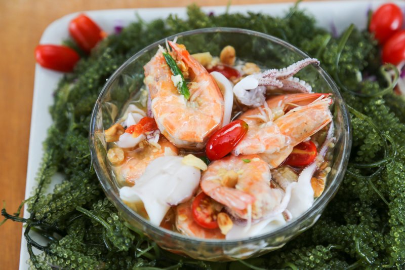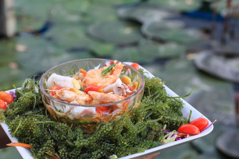 เมนูเด็ดและโดนใจของเรามียำสาหร่ายพวงองุ่นที่อร่อยเด็ด เคี้ยวเพลินบวกกับน้ำยำรสแซ่บแล้วเข้ากันสุด ๆ