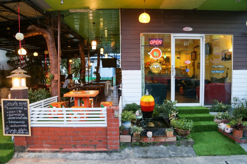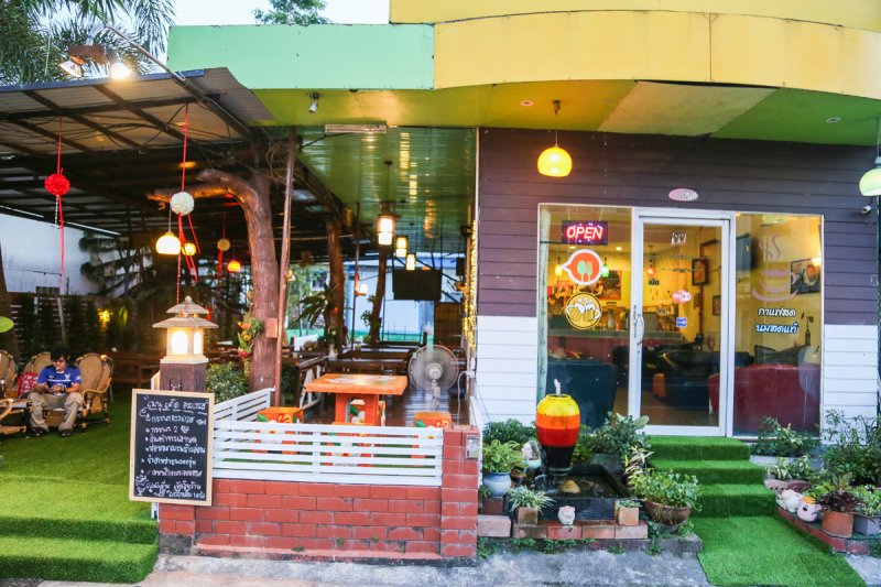ร้านนี่จะเปิดตั้งแต่ช่วง 12.00 น. เพราะว่านอกจากจะบริการอาหารสุดอร่อยแล้วยังมีบริการกาแฟสด เอาใจคอกาแฟอีกด้วย โดยที่นั่งจะมีให้เลือก 2 แบบในที่เดียว ทั้งห้องแอร์ และ แบบธรรมชาติ ภายในร้านยังมีสระบัวด้านหลังไว้ให้เดินเล่น หรือให้อาหารปลาได้อีกด้วย