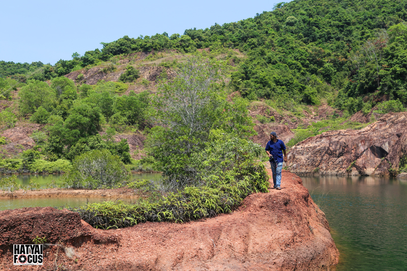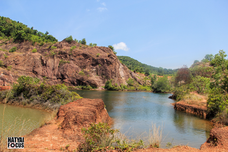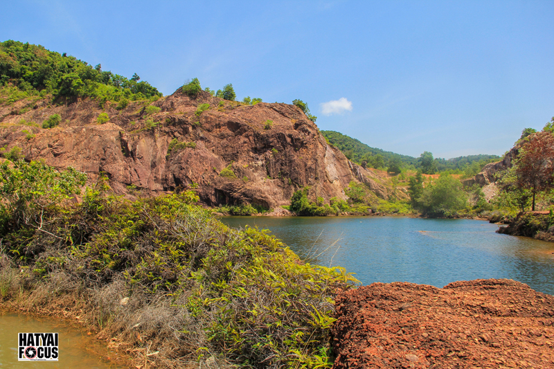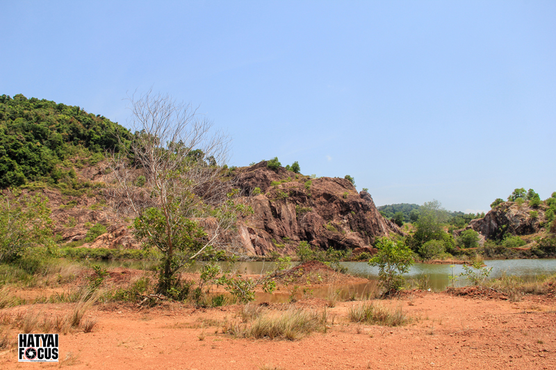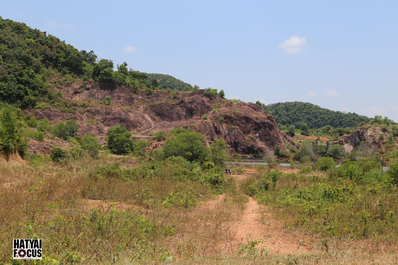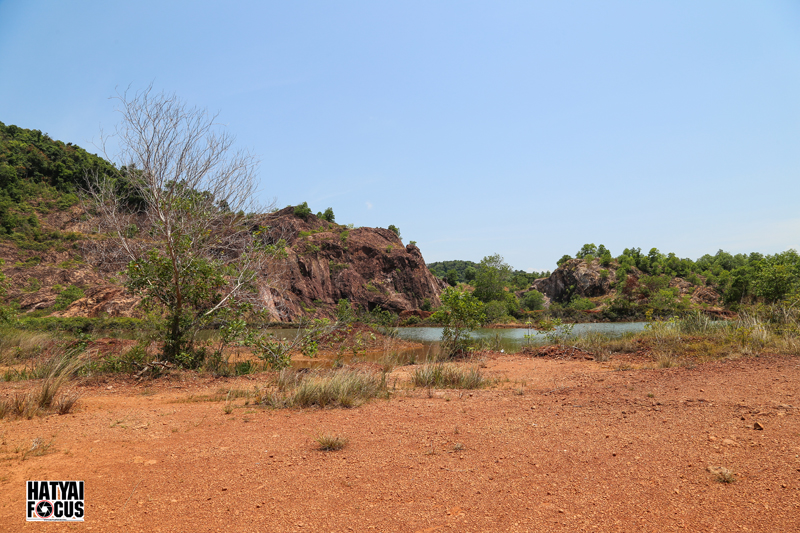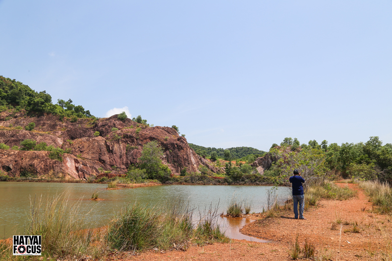 ระหว่างทางให้สังเกตภูเขาบริเวณทางขวามือให้ดีๆ เราจะเห็นบ่อดินที่เป็นแอ่งขนาดใหญ่ ตรงนี่แหล่ะคือจุดหมาย ให้เราเลี้ยวลงไปตามทางดินแดงเล็กๆ ตรงเข้าไปเรื่อยๆ ก็จะพบ Grand Canyon สงขลา