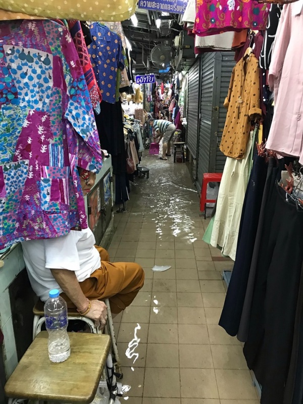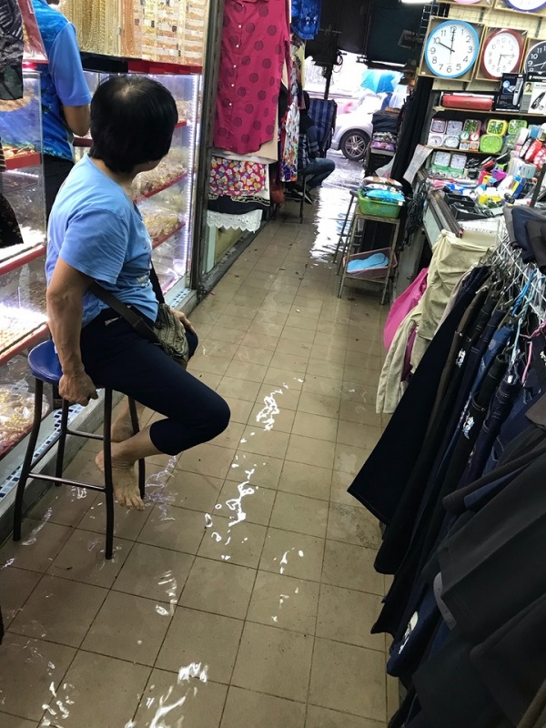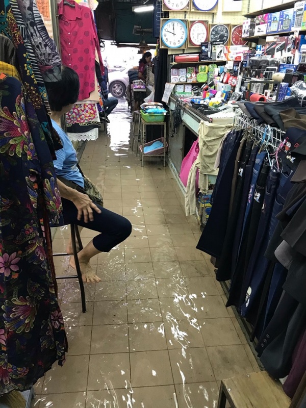 โดยบรรดาพ่อค้าแม่ค้าต้องรีบอพยพสิ่งของที่วางอยู่ทางเท่าขึ้นก่อนอื่นใดเลย เพราะถ้าหากเสียหายหรือโดนน้ำอาจเกิดความเสียหายอย่างมาก ไม่ว่าจะเป็นรองเท้า กระเป๋า เสื้อผ้า ต่าง ๆ หรือของกินที่วางติดกับพื้น โดยเหตุการณ์ดังกล่าวทำเหล่าพ่อค้าแม่ค้าตกใจเป็นว่าเล่น ชุ่มฉ่ำไปทั้งตลาดเลยไหมล่ะ