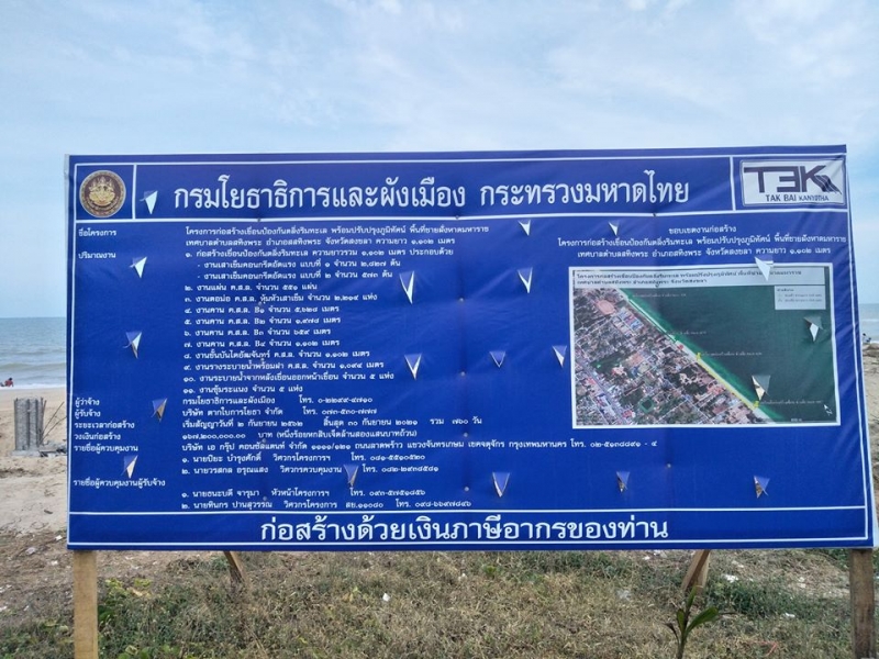 1. โครงการนี้ดำเนินการโดยไม่มีความจำเป็นในการป้องกันชายฝั่ง จากการสอบถามชาวบ้านเเทบนี้มีข้อมูลยืนยันว่าชายหาดไม่มีการกัดเซาะอย่างรุนเเรง