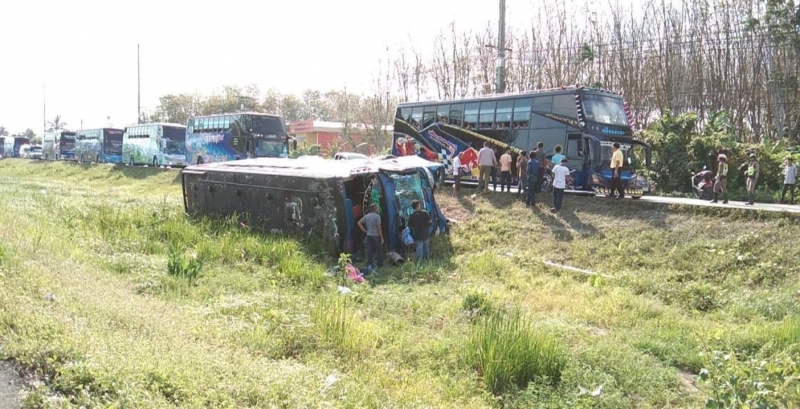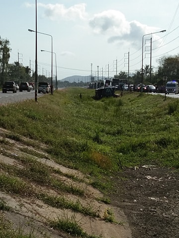 ที่เกิดเหตุพบรถทัวร์ทัศนศึกษา 6-7 คัน จอดเรียงกันอยู่บนถนน ส่วนคันที่เกิดเหตุตกอยู่ร่องกลางถนน สภาพด้านหน้าและด้านข้างพังยับทั้งคัน พลเมืองดีเห็นเหตุการณ์จึงเร่งนำคนเจ็บส่ง รพ.จะนะ อย่างเร่งด่วน