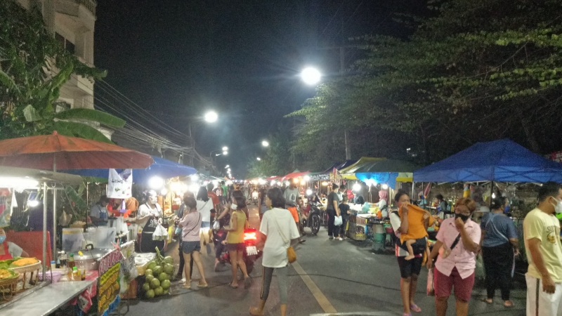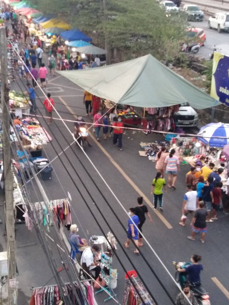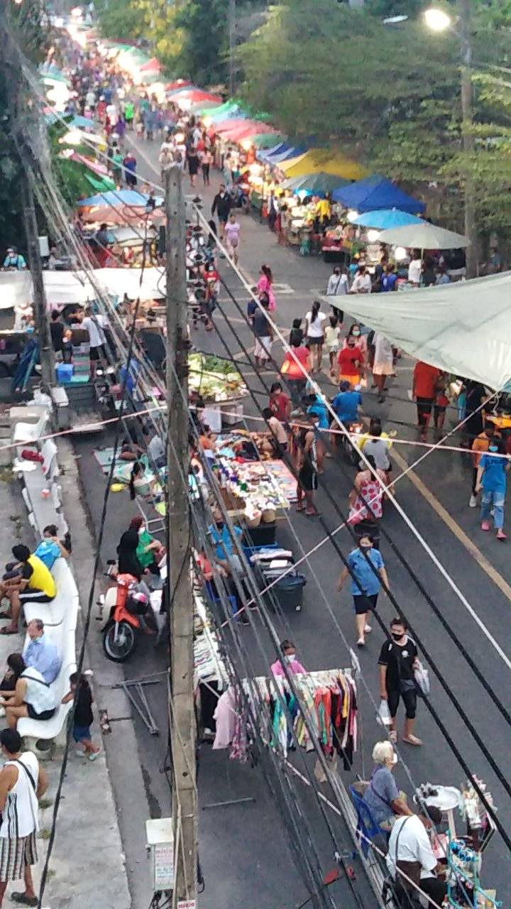 เมื่อวาน(9/5/63) เวลา 18.00 น.บรรยากาศบริเวณตลาดนัดถนนคนเดินริมทางรถไฟโชคสมาน ถนนโชคสมาน อ.หาดใหญ่ จ.สงขลา หลังเทศบาลนครหาดใหญ่ เปิดให้ผู้ประกอบการเริ่มขายสินค้าได้เป็นวันแรก ซึ่งได้มีการกำหนดมาตรการป้องกันการแพร่ระบาดของเชื้อไวรัส COVID-19 โดยให้ผู้ค้าที่เข้ามาขายสินค้าและประชาชนที่เข้ามาใช้บริการภายในตลาดนัดต้องสวมหน้ากากอนามัยตลอดเวลา ระหว่างที่อยู่ภายในตลาด ที่สำคัญผู้ค้าแต่ละร้านต้องมีเจลไว้ประจำร้าน และเว้นระยะห่างทางสังคมอย่างน้อย 1-2 เมตร