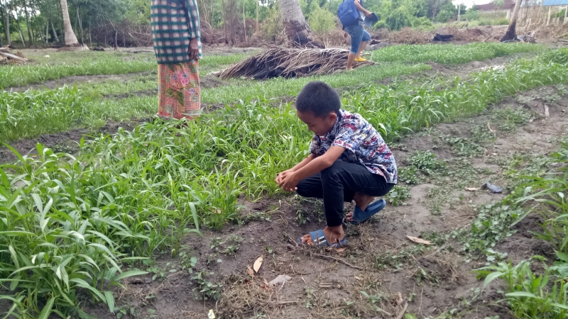 ทั้งนี้จากการพูดคุยกับน้องฟารุส วันนี้มuท่าทางเขินอาย เมื่อถูกคนแปลกหน้าบันทึกภาพ พูดผิดบ้างถูกบ้าง ภาษาใต้ บน ภาษากลาง แต่ก็พยายามตอบคำถามผู้สื่อข่าวด้วยท่าทีเขินอาย สุดท้ายทีมข่าวได้อุดหนุน ผักบุ้งน้องฟารุส 1 กำ โดยให้เงินไว้กินขนม 100 บาท ก่อนพาส่งกลับบ้าน ซึ่งบ้านกับสวนผักอยู่ห่างกันประมาณ 1 กิโลเมตร น้องจะต้องนั่งรถมาทีแปลงผักแห่งนี้กับครอบครัว