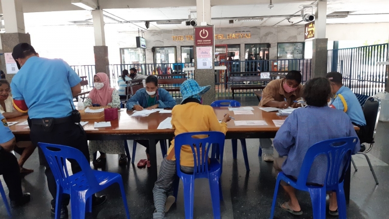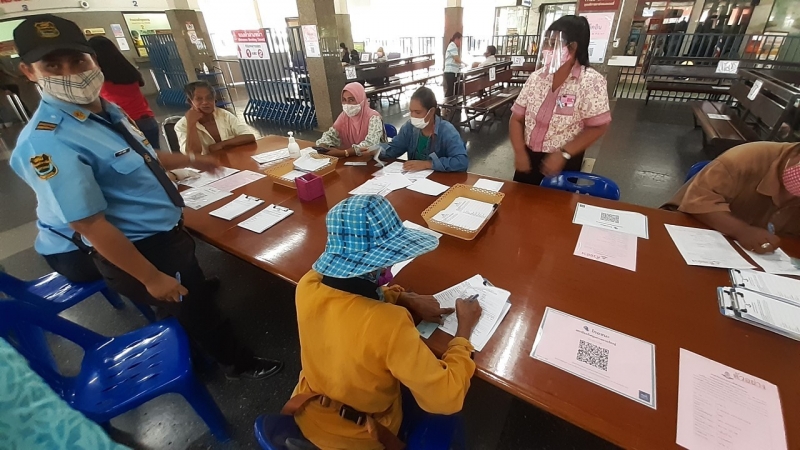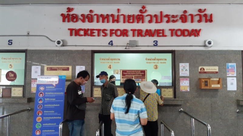 ในส่วนที่หลายคนกังวลในการสอบถามข้อมูลต้องทำอย่างไรบ้างก่อนการเดินทาง ตรงนี้เราจะจัดเจ้าหน้าที่รปภ. คอยอำนวยความสะดวกแก่ทุกคน เมื่อท่านผ่านด่านคัดกรองมาเข้าสู่สถานี จะมีการสแกนผ่านแอพไทยชนะ แล้วจึงเดินทางมายังโต๊ะรับรองตรงหน้าบริเวณห้องจำหน่ายตั๋ว เพื่อที่จะกรอกประวัติข้อมูลชื่อ เดินทางมาจากที่ไหนและกำลังจะไปที่ใด ในส่วนของผู้สูงวัยเจ้าหน้าที่จะมีการช่วยเหลือหากเขียนหนังสือไม่ได้ เมื่อท่านกรอกข้อมูลเสร็จก็สามารถที่จะลุกไปซื้อตั๋วได้ตามปกติ