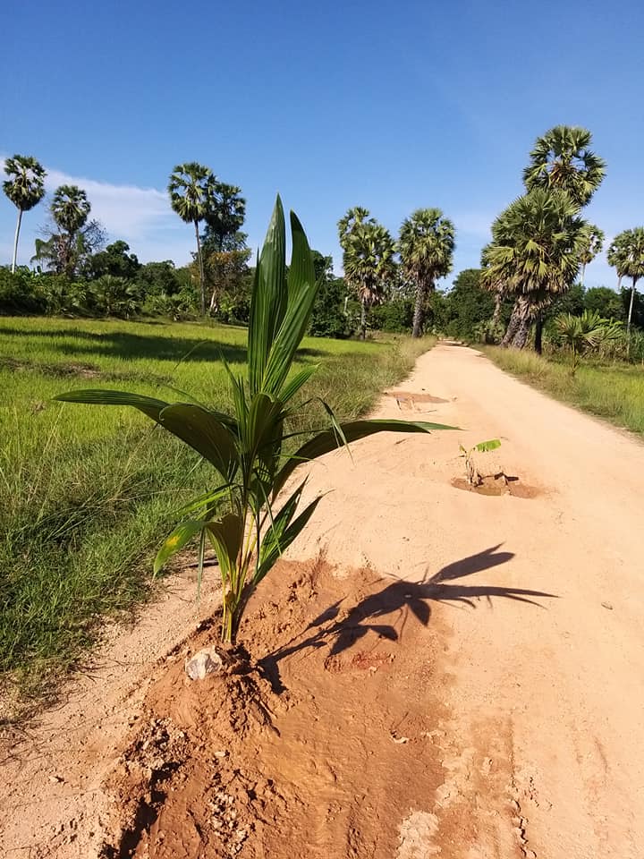 พร้อมข้อความว่า ใครน๊าช่างคิด มาปลูกต้นไม้บน มีทั้ง มะพร้าว กล้วย พริกขี้หนู ตะไคร้ กระเพรา คงเห็นว่ามีหลุมมีน้ำพร้อมอยู่แล้ว ไม่ต้องออกแรงขุดให้เมื่อยตุ้มอีกใครมีต้นไม้จะมาปลูกเพิ่มก็น่าจะได้นะ เพราะว่ายังมีหลุมอีกเยอะให้ชาวบ้านปลูก