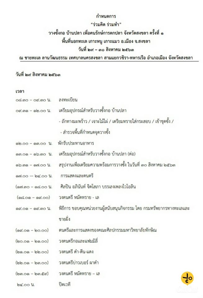 วันนี้ (23/8/63) หาดใหญ่โฟกัส มีข่าวประชาสัมพันธ์ กำหนดการ “ร่วมคิด ร่วมทำ” วางซั้งกอ บ้านปลา เพื่อคนรักษ์การตกปลา จังหวัดสงขลา ครั้งที่ 1 ในวันที่ 29-30 สิงหาคม 2563 โครงการดังกล่าว เกิดจากความตั้งใจที่จะสร้างพื้นที่ให้สำหรับคนรักษ์การตกปลาในพื้นที่จังหวัดสงขลา มีพื้นที่เฉพาะของกลุ่มและลดปัญหาความขัดแย้งกับการใช้ประโยชน์จากทะเลกับชุมชนประมงในพื้นที่สงขลา และเพื่อเป็นการร่วมกันอนุรักษ์ทรัพยากรทางทะเลสำหรับการใช้ประโยชน์ในระยะยาว
