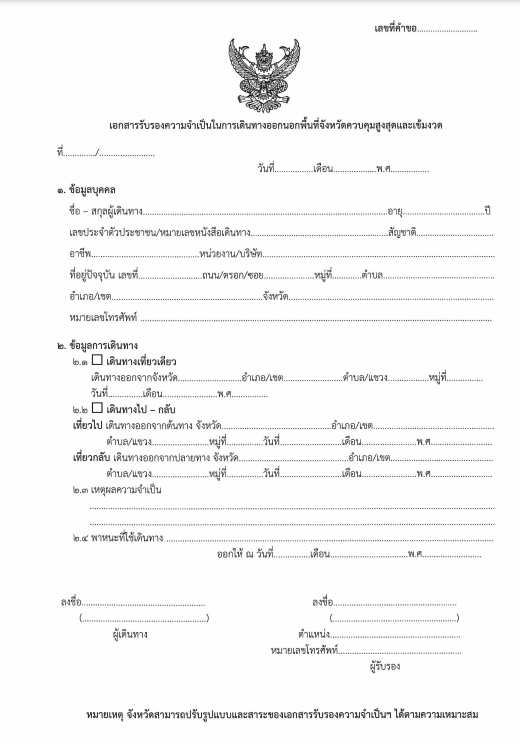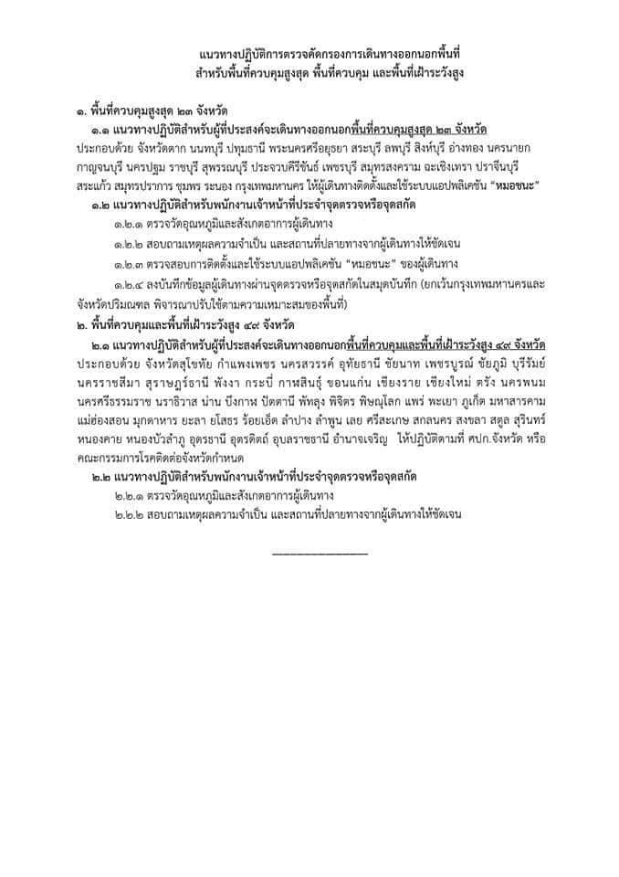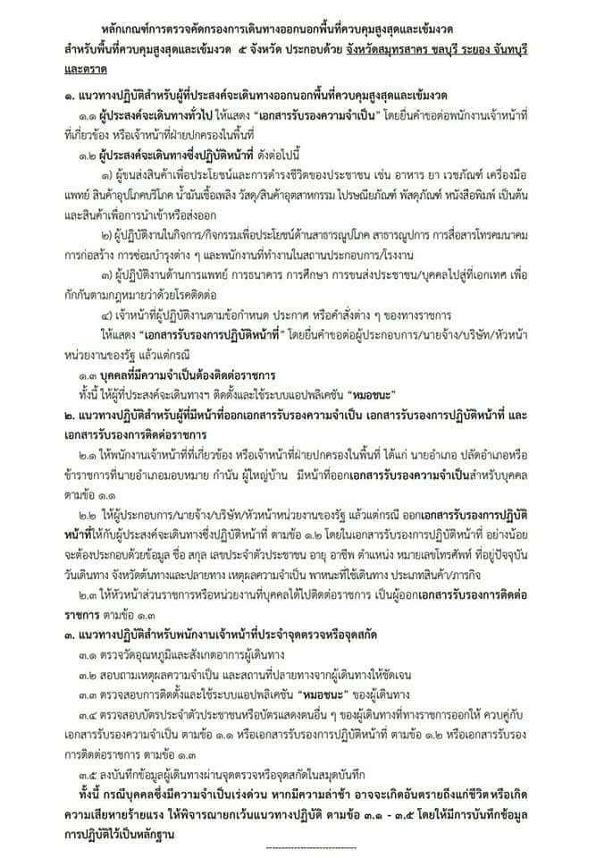 หลักเกณฑ์การตรวจคัดกรองการเดินทางออกนอกพื้นที่ควบคุมสูงสุดและเข้มงวด พร้อมตัวอย่างแบบฟอร์มคำร้อง และแนวทางการตรวจคัดกรองด่านตรวจ