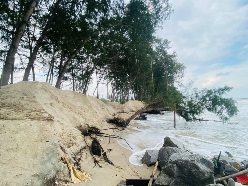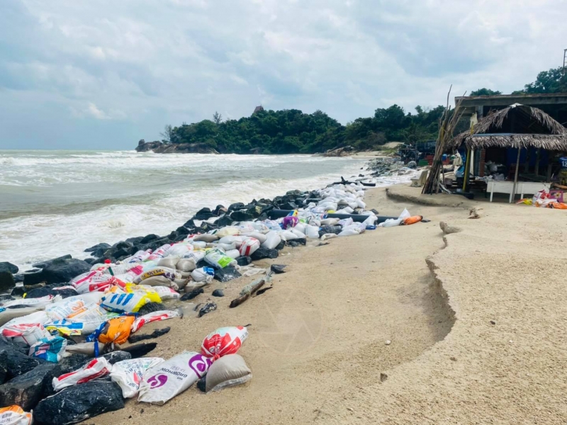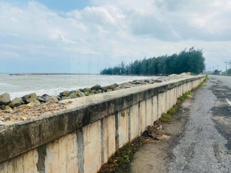 ซึ่งมีแนวโน้มรุนแรงมากขึ้น พบโครงสร้างเพื่อป้องกันการกัดเซาะชายฝั่ง ระยะทางยาว 9.04 กม. ได้แก่ การวางถุงใยสังเคราะห์บรรจุทราย เขื่อนกันคลื่นริมชายฝั่งชายฝั่ง กำแพงคอนกรีตแบบตั้งตรง และเขื่อนกันคลื่นนอกชายฝั่ง ทั้งนี้ จะติดตามและสำรวจข้อมูลสถานการณ์การกัดเซาะชายฝั่งหลังฤดูมรสุมต่อไป