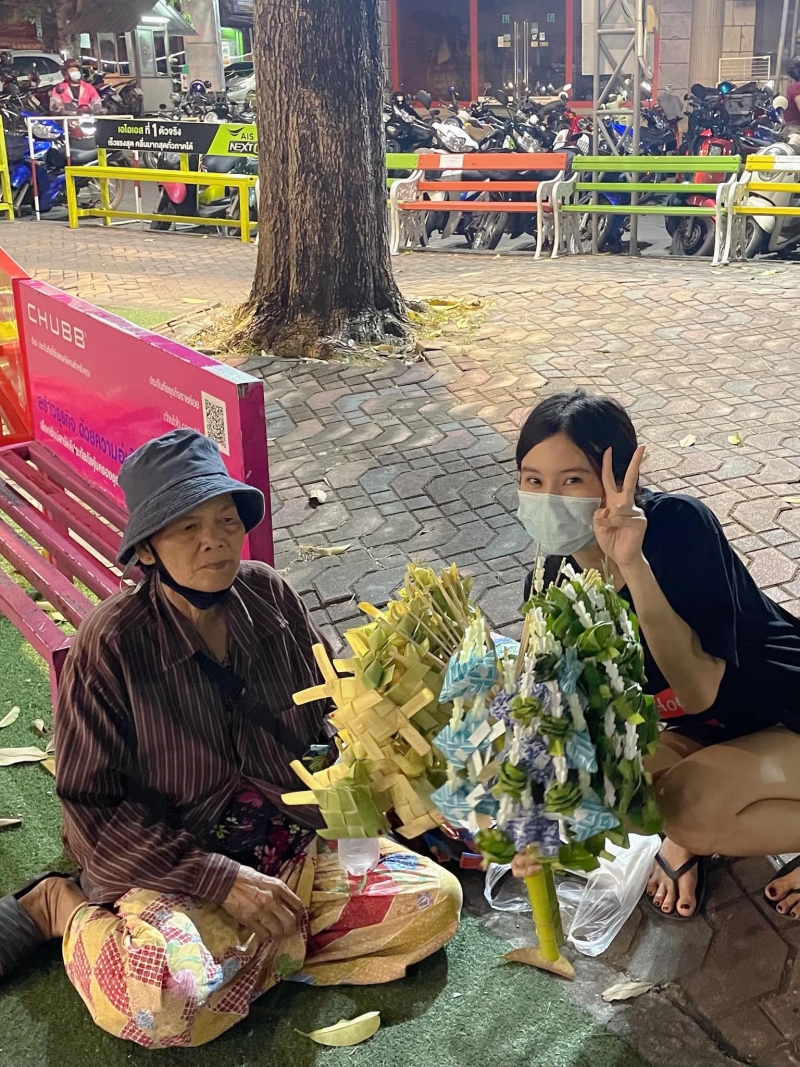 หากใครอยากจะช่วยอุดหนุนคุณยายสามารถซื้อได้ โดยปลาตะเพียนและดอกกุหลาบใบเตยราคาชิ้นละ 40 บาท คุณยายจะนั่งขายอยู่แถว ๆ ร้านขายขนมยุค 90 (คุณยายจะมาขายแค่บางวัน)