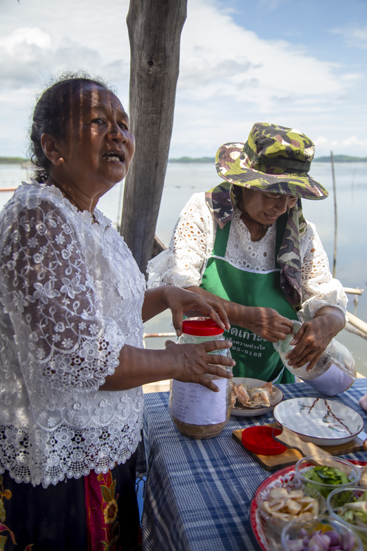 ด้วยวิถีประมงแบบชาวบ้าน วางอวนหาปลา จับปลาแบบอนุรักษ์และคำนึงถึงสิ่งแวดล้อมในการอนุรักษ์ทรัพยากรในพื้นที่ นำปลามาแปรรูป โดยใช้วัตถุดิบน้ำตาลโตนดจากต้นตาลโตนดที่ชุกชุมในชุมชน ให้ความหวานจากธรรมชาติ ทำให้ปลาส้มมีรสชาติหวานกลมกล่อม และส่วนผสมจากข้าวคั่ว เป็นพันธุ์ข้าวส่าหรีที่ปลูกเอง