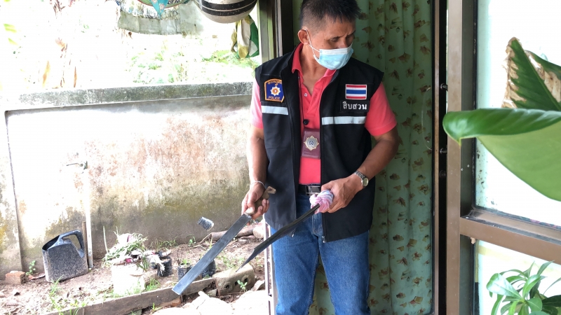 ในขณะเดียวกันผู้สื่อข่าวได้ลงพื้นที่ที่บ้านทับช้าง เพื่อดูสภาพลูกสาว คนโตที่อยู่กับยายในอำเภอนาทวี จังหวัดสงขลา พร้อมด้วย สส.ณัฏฐ์ชนน ศรีก่อเกื้อ และ พ.ต.ท.กฤษฏา แก้วทอง รอง.ผกก.สส.สภ.สะท้อน เพื่อตรวจสอบที่เกิดเหตุ ที่นายทวีศักดิ์ แซ่ลิ้ม อายุ 35 ปี ทำร้ายร่างกายภรรยา เหตุเกิดที่บ้านที่เกิดเหตุอยู่ที่บ้านเลข 46/1 หมู่2 ต.ทับช้าง อ.นาทวี จ.สงขลา เจ้าหน้าที่ตำรวจพร้อมด้วย สส.เขต7 สงขลา เดินทางไปที่บ้านดังกล่าวพบนายทวีศักดิ์ อยู่ที่บ้านกับลูกสาวคนโตตำรวจจึงควบคุมตัวพร้อมค้นหายาเสพติดในตัวและภายในบ้านเบื้องต้นยังไม่พบยาเสพติด ตำรวจถามว่าเสพยาหรือไม่ นายทวีศักดิ์ ยอมรับว่าเสพยาจริง โดยรับยามาจากเพื่อน ค้นพบอาวุธมีดขนาดใหญ่ยาวประมาณฟุตครึ่ง 2 ด้าม ที่ใช้ก่อเหตุทำร้าย นางวรรณา ยิ้มเยื้อน ผู้เป็นภรรยา
