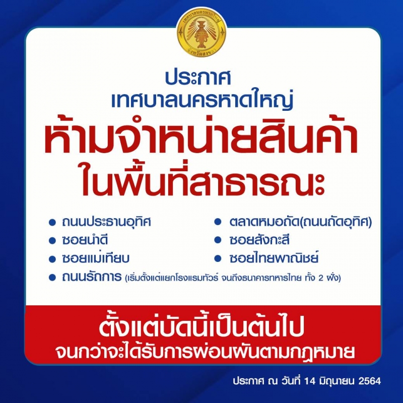 เนื่องจากขณะนี้พบการติดเชื้อในเขตเทศบาล หาดใหญ่ จำนวนกว่า 453 อาจส่งผลกระทบต่อสถานการณ์ทางเศรษฐกิจและทำลายชีวิตและทรัพย์สินของประชาชน โดยอาศัยอำนาจตามพระราชบัญญัติเทศบาลพ.ศ. 2496 แก้ไขเพิ่มเติมเป็น (ฉบับที่ 14) พ.ศ. 2496 พ.ศ. 2522 มาตรา 48 ตรี มาตรา 50 (2) (5) พระราชบัญญัติว่าด้วยการรักษาความสะอาดและความเป็นระเบียบเรียบร้อยของประเทศ พ.ศ. 2551 พ.ศ. 2535 และที่แก้ไขเพิ่มเติม (ฉบับที่ ๒) พ.ศ. 2535 พ.ศ. 2560 มาตรา 20 (1) มาตรา 44 (2) (3)