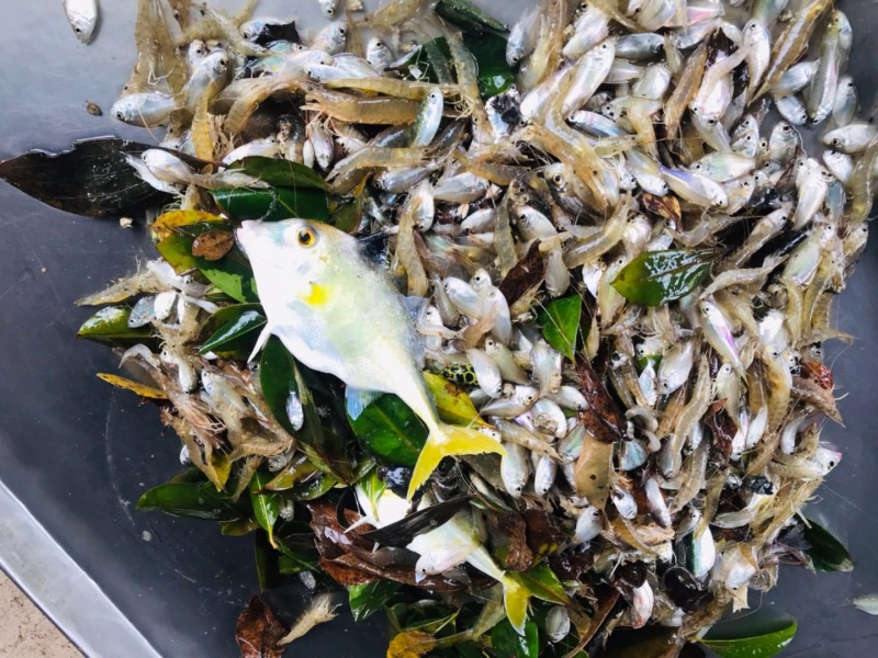 เพื่อนำมาวิเคราะห์ชนิดและปริมาณสัตว์น้ำแต่ละกลุ่ม จากผลการจำเเนกชนิดเบื้องต้น พบสัตว์น้ำ 32 ชนิด ชนิดที่พบมากได้แก่ กุ้งตะกาดขาว (Metapenaeus moyebi) กุ้งตะกาดหางแดง (Metapenaeus ensis) ปลาขี้จีนครีบดำ (Ambassis kopsii) ปลาแป้นเล็ก (Leiognathus brevirostris) และปลานิล (Oreochromis niloticus)