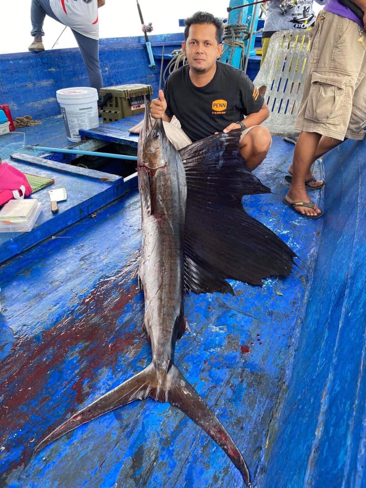 วันนี้(1/9/64) ผู้ใช้เฟซบุ๊กPang-Weerapong Sukhawanno ได้โพสต์ภาพคู่กับกระโทงร่มหรือปลาใบตัวนี้20-30 กิโลกรัม กินสายลอยลูกปลา บริเวณท่อเหล็กอ่าวไทยสงขลาน้ำลึก 40เมตร ลอยสายผิวน้ำลึกประมาณ 5 วา เบ็ตเบอร์16/2 ตาผูกสลิง ปลากระโทงร่ม หรือ ปลากระโทงแทงร่ม