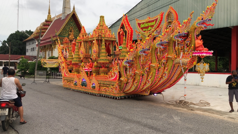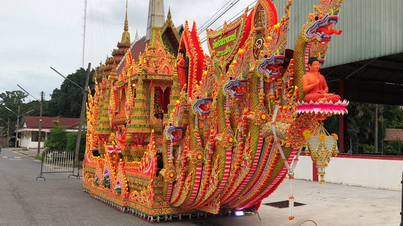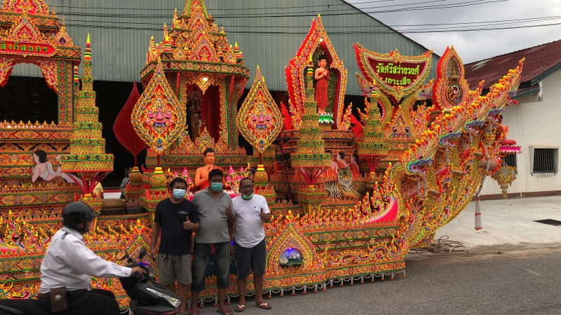 ก็เรียกว่าประเพณีวัฒนธรรมก็ยังคงมีอยู่เพียงแค่ว่าปรับเปลี่ยนรูปแบบให้เข้ากับสถานการณ์ในบางภาวะที่ว่า ถ้าเราให้คนมาลากพระก็จะเกิดความแออัดที่นี่เราก็เอาเรือพระไว้กับที่แล้วก็เปิดโอกาสให้ญาติโยมจะได้ทยอยมาร่วมทำบุญได้ตลอดวันออกพรรษา ซึ่งจะเริ่มพรุ่งนี้เป็นวันแรก เจริญพร