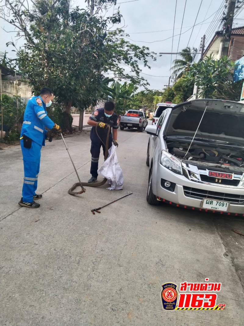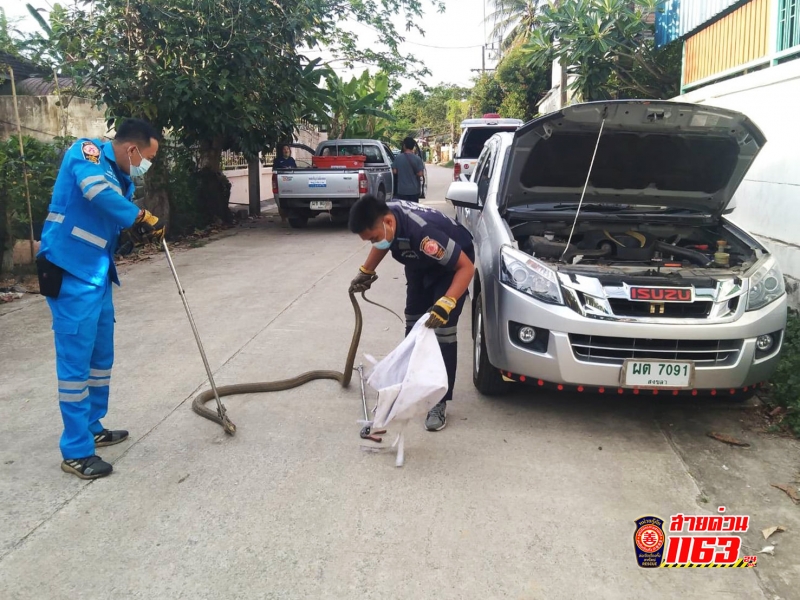 สอบถามเจ้าของรถทราบว่า ได้ขับรถมาจากอ.เมืองสงขลาแล้วมาจอดภายในซอยดังกล่าว ต่อมาได้เปิดฝากระโปรงเครื่องรถไว้และก็เจองูจงอางเข้าพอดีโดยไม่ทราบว่างูได้เข้ามาตั้งแต่เมื่อไหร่ จึงได้โทรขอความช่วยเหลือจากหน่วยกู้ภัยให้มาจับตัวนำไปปล่อยคืนสู่ธรรมชาติต่อไป