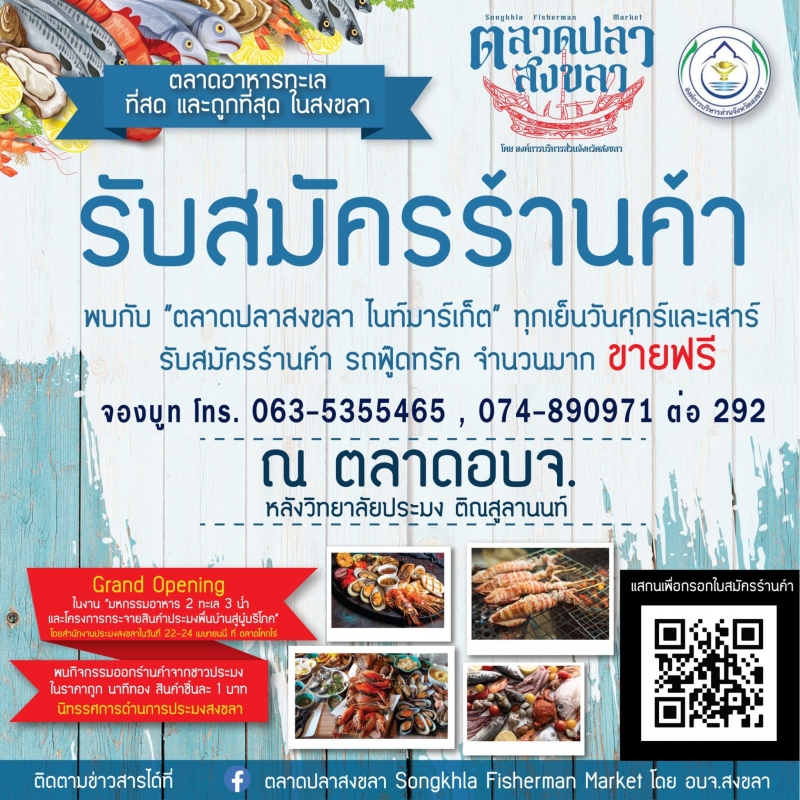 รับสมัครร้านค้า ขายฟรี สนใจติดต่อ063-5355465/074-890971 ต่อ 292 หรือทางแฟนเพจ ตลาดปลาสงขลา songhkla fisherman market