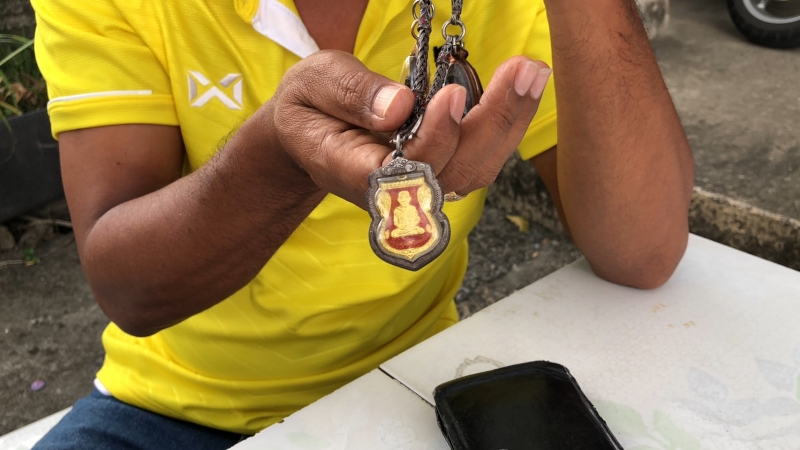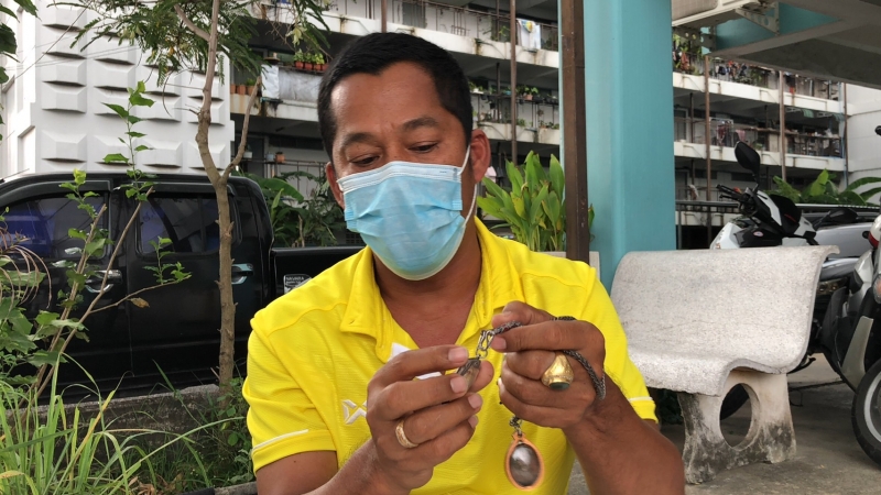 จากการสอบถาม ดาบตำรวจสนธยา ขุนทองปาน หรือ จ่าเอี้ยง ได้เล่าว่า เมื่อช่วงวันที่ 8 เมษายนที่ผ่านมา ขณะปฎิบัติหน้าที่เข้าการตรวจค้นและจับกุมผู้ต้องหายาเสพติดในพื้นที่ชุมชนสะพานดำ หลังเสร็จภารกิจพระเหรียญหลวงปู่ทวดปี 2561 เนื้อทองคำแท้ ได้หลุดหายไป ซึ่งเป็นพระที่ตนนับถือศรัทธาเป็นอย่างมากและห้อยคอใส่ไปทำงานอยู่ทุกวัน ปัจจุบันตนห้อยพระอยู่ 5 องค์ มีหลวงปู่ทวด 2 องค์ หลวงพ่อปลอดวัดหัวป่า 1 องค์ หลวงพ่อเอื้อม 1 องค์ และพระที่หล่นหายเป็นเหรียญหลวงปู่ทวด วัดพระโค๊ะ เนื้อทองคำ ซึ่งตนมารู้ตัวอีกทีวันเสาร์และได้โพสต์ตามหาลงในเพจชุดตะวันไว้พร้อมกับเบอร์โทรศัพท์ ทำให้ตนเป็นกังวลถึงกับกินไม่ได้ นอนไม่หลับและหมดกำลังใจในการปฎิบัติหน้าที่เป็นเวลา 2 คืน