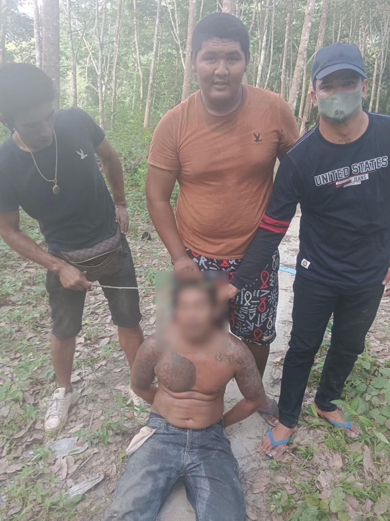 ต่อมาวันที่ 16 เมษายน หลังโพสต์คลิปคนร้ายจากกล้องวงจรปิด ตนก็ได้รับเบาะแสคนร้ายว่าพักอยู่ที่ขนำบนเขา ภายในป่าสวนยางพารา ตำบลเขาพระ ตนกับเพื่อนอีกสามคนจึงได้ขี่รถจักรยานยนต์ไปกัน 2 คัน ก่อนขี่รถจักรยานยนต์ขึ้นไปบนเขาและได้พบกับคนร้ายอยู่ในขนำพอดี เมื่อคนร้ายเห็นตนและเพื่อนขี่รถจักรยานยนต์เข้ามา คนร้ายจึงได้กระโดดจากขนำก่อนจะวิ่งหลบหนีขึ้นเขา ตนและเพื่อนจึงได้วิ่งตามขึ้นไปเพื่อที่จะจับคนร้ายให้ได้ ระหว่างที่หาตัวคนร้ายนั้นเพื่อนของตนเป็นทหารเกณฑ์อยู่ 3 จังหวัด จึงได้แนะนำให้ยืนเป็นวงกลมค่อยๆเดินโอบล้อมคนร้ายเข้ามา ก็สามารถจับคนร้ายไว้ได้ซึ่งใช้เวลาตามจับคนร้ายประมาณเกือบ 1 ชม.และนำตัวลงมาจากบนเขา ก่อนใช้รถกระบะแห่คนร้ายไปรอบๆอำเภอควนเนียงพร้อมนำตัวส่งเจ้าหน้าที่ตำรวจ สภ.ควนเนียง ดำเนินคดีตามกฎหมาย