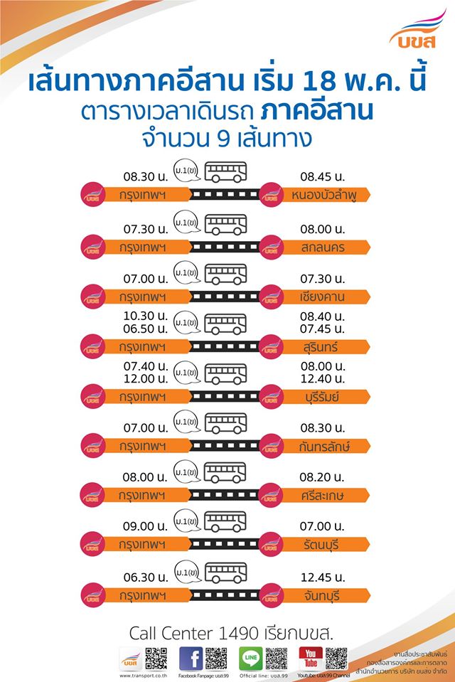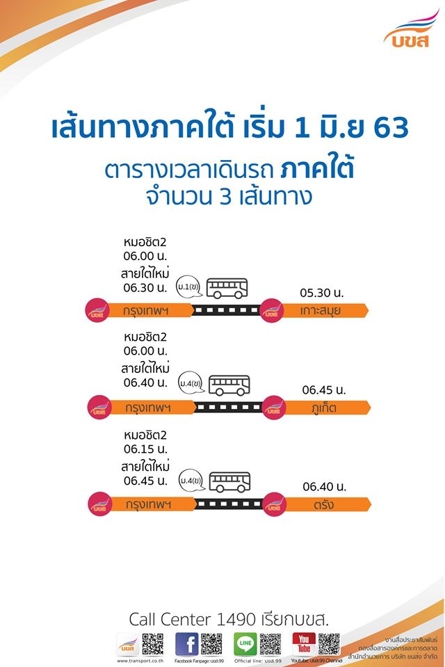 ส่วนเส้นทางระหว่างประเทศ 15 เส้นทาง บขส. ยังหยุดการเดินรถชั่วคราว จนกว่าจะมีประกาศให้สามารถเปิดเดินรถระหว่างประเทศได้ ทั้งนี้ผู้ใช้บริการสามารถจองตั๋วและตรวจสอบตารางการเดินรถ บขส. ผ่านช่องทางออนไลน์ Application E-Ticket และ Website บขส. www.transport.co.th หรือสอบถามข้อมูลการเดินทางเพิ่มเติม โทร Call Center 1490 เรียก บขส.ตลอด 24 ชั่วโมง