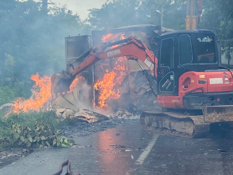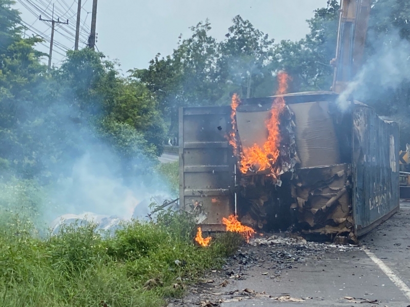 และเมื่อ เวลา 10.00 น. ในวันเดียวกัน งานป้องกันบรรเทาสาธารณภัยฯ ได้รับแจ้งเกิดเพลิงไหม้รถเทรลเลอร์คันเดิมที่เกิดเหตุ สาเหตุเนื่องจากขณะทำการขนย้ายพัสดุที่บรรทุกมา คือกระดาษม้วนจำนวน 25 ตัน เกิดเหตุประทุขึ้นอีกครั้งที่ม้วนกระดาษ