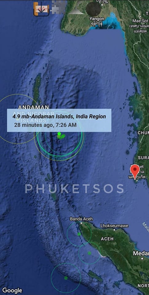 ด้านปภ.ภูเก็ต ยืนยันความพร้อมเฝ้าระวังคลื่นยักษ์สินามิ ขณะที่เสาสัญญาเตือนภัยยังใช้การได้ปกติ มีการทดสอบการส่งสัญญาณทุกวันพุธ หลังหลายฝ่ายมีความกังวล รายงานแผ่นดินไหวหมู่เกาะอันดามัน ประเทศอินเดีย – เมียนมา ใกล้ภูเก็ต ราว 400 กม. 2 วันรวมกว่า 30 ครั้ง ล่าสุดยังไหวต่อเนื่อง