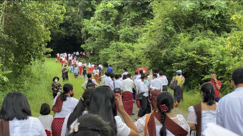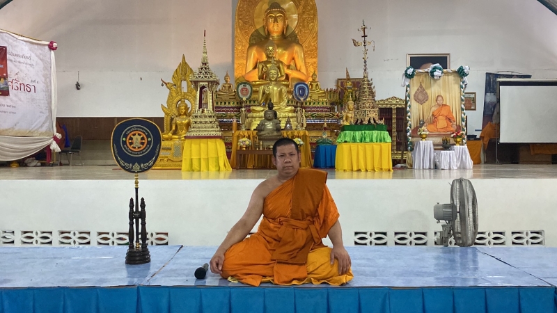 ส่วนกิจกรรมทางพุทธศาสนาในครั้งนี้ เนื่องมาจาก เมื่อ 2 ปีก่อน พระอาจารย์ศรีนะ ซินะ พระสงฆ์ประเทศมอญ ได้บวชเป็นพระสงฆ์และจะเดินทางกลับประเทศมอญ แต่ด้วยมีการแพร่ระบาดของเชื้อไวรัสโควิด-19 จึงไม่สามารถกลับประเทศได้จึงได้ไปจำวัดที่วัดภูเขาหลง ตำบลทุ่งหวัง อำเภอเมือง จังหวัดสงขลา ชั่วคราว ระหว่างที่จำวัดก็ได้เกิดอยากตอบแทนบุญคุณแผ่นดินประเทศไทย ที่ได้ให้พระนฤนัยและชาวมอญได้อยู่อาศัยในประเทศจึงได้ระดมเงินร่วมกันทะนุบำรุงวัดภูเขาหลงและสร้างองค์พระธาตุอินทร์แขวน หรือ เจดีย์ไจก์ทิโย เพื่อเป็นจุดศูนย์รวมของชาวพุทธทั่วโลก ซึ่งพระธาตุอินทร์แขวน เดิมทีตั้งอยู่ในเมืองไจก์โถ่ รัฐมอญ บนยอดเขาพวงลวง ณ ระดับความสูง 3,615 ฟุต จากระดับน้ำทะเล ส่วนคนไทยเรียกพระธาตุองค์นี้ว่า“พระธาตุอินทร์แขวน” ส่วนคนพม่าและคนมอญเรียกเจดีย์องค์นี้ว่า “ไจก์ทิโย” ซึ่งเป็นภาษามอญ หมายถึง เจดีย์เหมือนศีรษะฤๅษี หรือ “เจดีย์หัวฤๅษี”