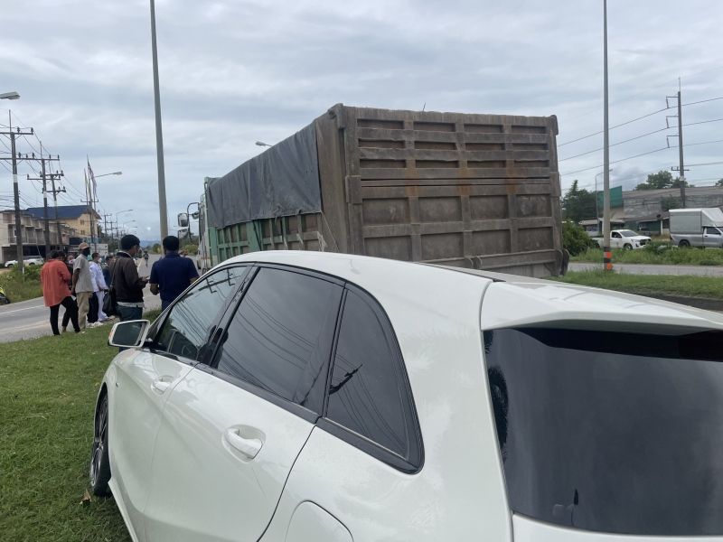 และพบรถสิบล้อของบริษัทเขาบันไดนางศิลา ป้ายทะเบียน 82-3313 จอดอยู่ริมทางในที่เกิดเหตุ รวมถึงรถเบนซ์ที่ขับตามหลังมาได้รับความเสียหายไปด้วย