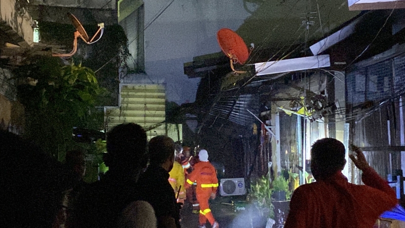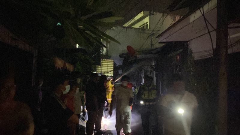 ที่เกิดเหตุภายในซอยตันหลังมูลนิธิมิตรภาพสามัคคีท่งเซียเซี่ยงตึ๊ง พบเพลิงกำลังลุกไหม้บ้านไม้ชั้นเดียว 3 หลังติดกันไม่มีเลขที่ ซึ่งทราบว่าเป็นบ้านร้างไม่มีใครอาศัยอยู่ ส่วนบริเวณโดยรอบพบชาวบ้านกำลังขนของใช้ภายในบ้านอาทิ ถังแก๊ส พัดลม ทีวี ฯลฯ ออกมานอกบ้าน เจ้าหน้าที่ดับเพลิงจึงเร่งฉีดน้ำสกัดไฟเพื่อไม่ให้ไฟไหม้ลุกลามบ้านข้างเคียง