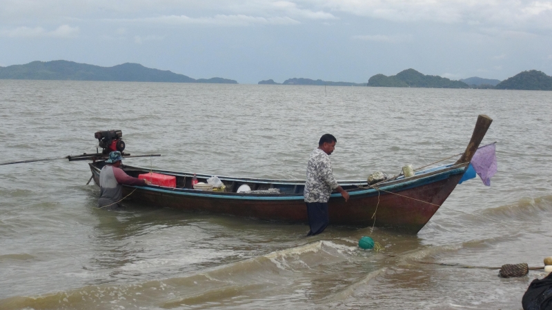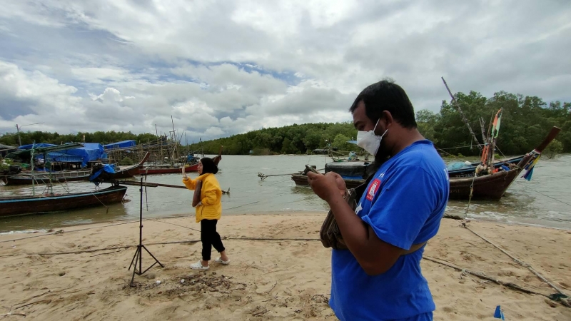 วันนี้ทีมงานพาไปที่หาดหัวหิน ตำบลละงู จังหวัดสตูล เป็นจุดริมชายทะเลที่มีชาวประมงในพื้นที่ ต่างวิ่งเรือนำอาหารทะเลสดๆจากท้องทะเลวิ่งเข้าฝั่ง เพื่อนำเรือมาจอดนำอาหารทะเลขึ้น และ 2 สามีภรรยาชาวประมงจังหวัดสตูล กำลังเตรียมอุปกรณ์และยืนไลฟ์สดขายปลา โดยมีวิวฉากหลังเป็นทะเลจริงๆ