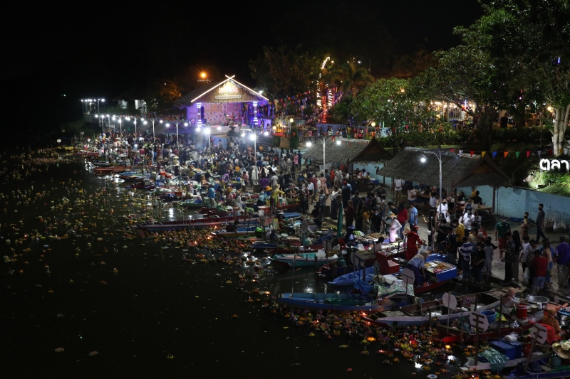 ส่วนบรรยากาศในพื้นที่ตลาดน้ำคลองแหในช่วงเย็นและค่ำก็ต่างมีชาวไทยและชาวมาเลเซียแห่มาลอยกันอย่างหนานแน่น ซึ่งปกติในวันอังคารทางตลาดน้ำไม่ได้ดปิดให้บริการแต่ในปีนี้ได้เปิดพิเศษ 1 วัน ให้บริการขายอาหารและลอยกระทง