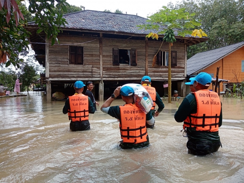เส้นทางสายรองได้รับความเสียหายมีน้ำไหลเข้าบ้านประชาชนได้รับผลกระทบ 4,644 หลังคาเรือน เจ้าหน้าที่ ศบภ.มทบ.42 โดย ร.5 พัน.1 เข้าช่วยเหลือขนสิ่งของออกมาไว้ที่สูง