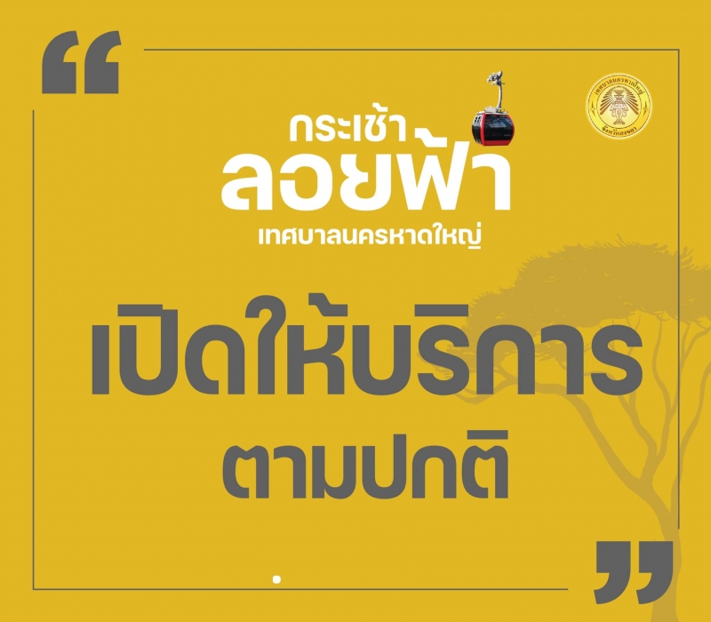 วันนี้ (11/10/66) ประชาสัมพันธ์ กระเช้าลอยฟ้าเทศบาลนครหาดใหญ่ เปิดให้บริการตามปกติ เปิดให้บริการทุกวัน ตั้งแต่เวลา 09.00 น. - 16.30 น.