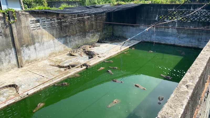 วันนี้ (27/2/66) ชาวบ้านผวา จระเข้นับร้อยตัว ถูกปล่อยทิ้งในบ่อเลี้ยงร้าง หลังเจ้าของเสียชีวิตเมื่อปีที่ผ่านมา ขณะที่ก่อนหน้านี้เคยหลุดออกไปอยู่หน้าบ้านชาวบ้านมาแล้ว จึงอยากให้หน่วยงานที่เกี่ยวข้องเข้าช่วยเหลือ เพราะบ่อเลี้ยงแห่งนี้อยู่กลางชุมชน ล่าสุดเจ้าหน้าที่ประมงสงขลา ลงพื้นที่แล้ว พบว่า เป็นบ่อเดิมที่เจ้าของเคเยแจ้งเลี้ยง 190 ตัว แต่ขณะนี้เหลือเพียงประมาณ 100 ตัว และยังพบทำสัญญากับเอกชนคู่ค้า ทำให้ราชการยังเข้าจัดการไม่ได้